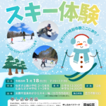 2025-12-18 / 最終更新日時 : 2026-01-05 tsuru-eca 受付終了したプログラム 【小3~5、中学生向け】スキー体験(2026.1.18) 申込受付期間:1月4日(日)まで※申し込みパスワードは、学校経由で配信または配布されるちらしをご確認ください。 年末年始休業期間のお知らせ 開催期間 2026年1月18日(日) 7:15~17:30 参加対象 なぎさ公園 […]